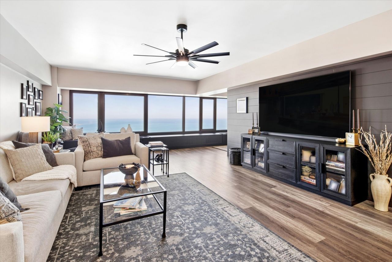 High above the city, where the skyline meets the shoreline, this fully reimagined residence in the iconic John Hancock Building offers a rare blend of architectural intention and refined comfort. Completed in October 2024, the full renovation transformed the home into a modern sanctuary-designed and personally curated by an interior designer and architect. From the moment you enter, the elevated craftsmanship is unmistakable. Raised ceilings, solid wood doors, custom millwork, and wide-plank luxury flooring create warmth and cohesion throughout. The open-concept layout was thoughtfully redesigned to enhance both flow and functionality, while two expansive north-facing windows frame uninterrupted views of Chicago's iconic lakefront - an ever-changing work of art by day and night. The kitchen was conceived as both centerpiece and gathering space. Soft-close Kemper cabinetry with hidden organizers, Cambria quartz surfaces, a striking Basalt Nova marble mosaic backsplash with gold accents, and Samsung Bespoke smart appliances come together in a design that is as beautiful as it is intelligent. Every finish was selected with purpose. The primary suite feels like a boutique hotel retreat-quietly luxurious, wrapped in custom details including sound-insulated walls, a professionally organized walk-in closet, and motorized designer shades. The spa-inspired bath is clad in Carrara marble and appointed with Kohler fixtures and refined lighting, delivering a daily ritual of calm. The secondary bedroom and bath continue the narrative of thoughtful design, incorporating heated flooring, custom storage, and a salvaged historic Chicago transom that preserves privacy while subtly capturing lake views-an unexpected architectural moment. Behind the beauty lies substance: all-new plumbing and electrical systems, three individually controlled HVAC units with Nest integration, full asbestos abatement, rebuilt walls, in-unit laundry, and meticulous soundproofing. This is not a cosmetic update-it is a comprehensive reconstruction. Set within the iconic 175 East Delaware Place, also known as the John Hancock Building, residents enjoy a full-amenity lifestyle highlighted by the spectacular 44th-floor amenities level-offering some of the best panoramic views in the city. The building features a professionally equipped fitness center, indoor pool, 2 party rooms, 24/7/365 door staff, on-site management and engineers, receiving room, and everyday conveniences including Potash Markets grocery, dry cleaner, and seamstress services. Very walkable to some of Chicago's favorites: Oak Street Beach, superb restaurants, world class museums, farmers' markets and the many festivals during Chicago's terrific summer, and the best is having front row seats to Chicago's famous Air and Water Show every August. This is a turnkey, design-driven residence where every detail has already been elevated. Simply move in and begin living above it all. Welcome home!